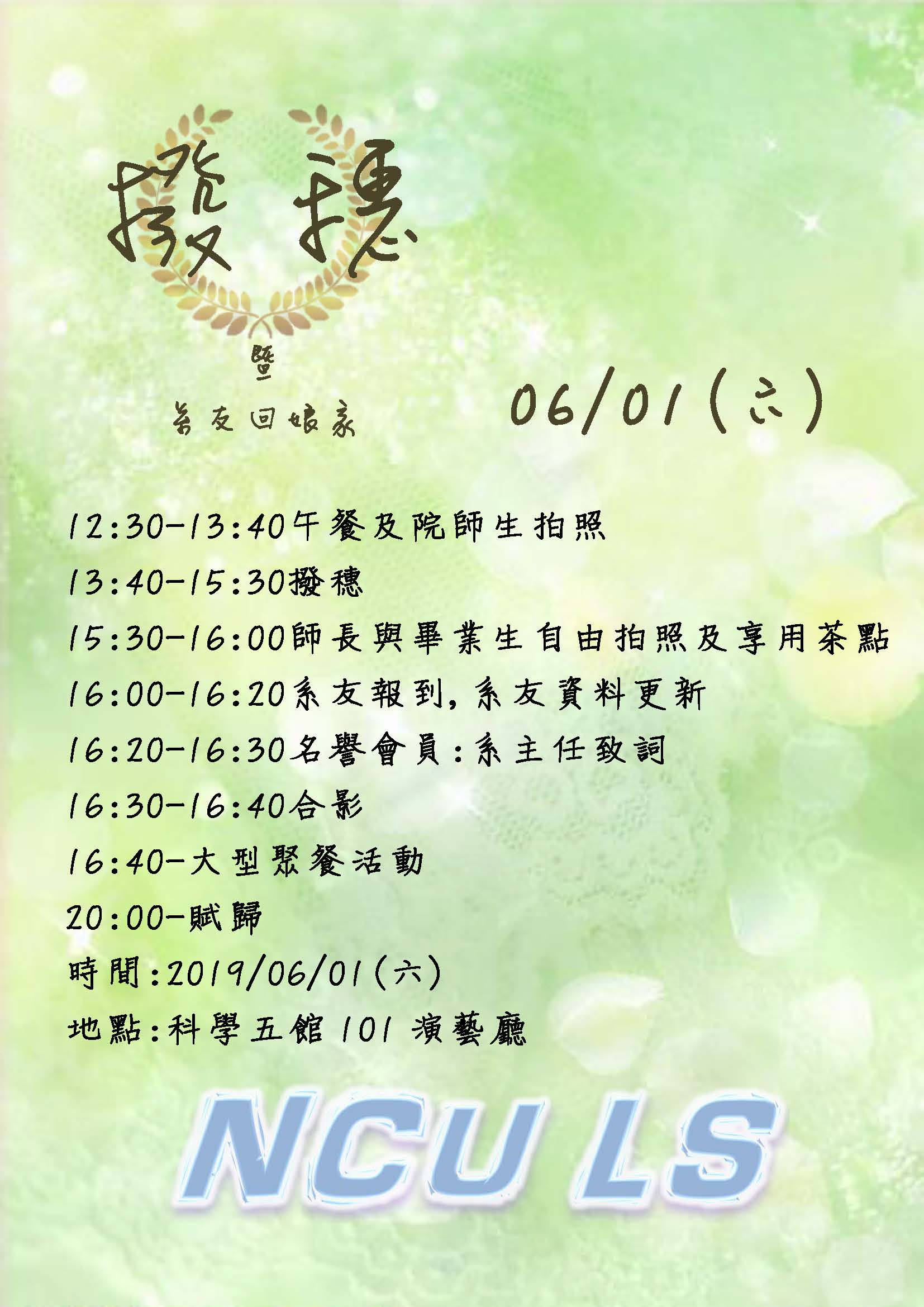導生聚會 上一則 下一則 2019年撥穗典禮(107學年度) 發佈日期: 2019-06-01 最後更新日: 2020-06-06 資料來源: 瀏覽人次:1288 更多花絮照片(請點我) 相簿 2019年撥穗典禮(107學年度) 2019年撥穗典禮(107學年度) 2019年撥穗典禮(107學年度) 2019年撥穗典禮(107學年度) 2019年撥穗典禮(107學年度) BACK