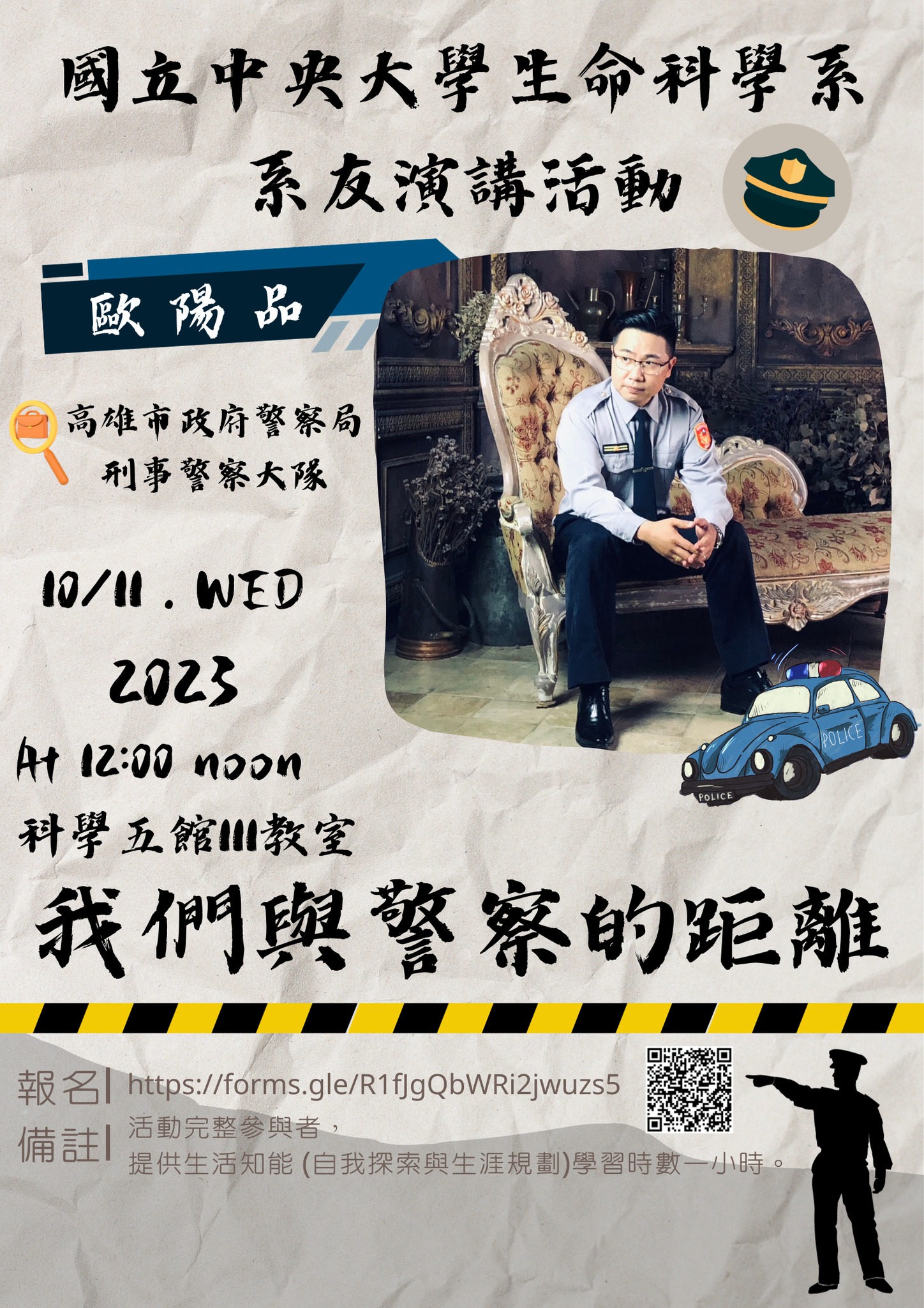系友專區 上一則 下一則 2023.10.11 大學部94級歐陽品系友演講(現職高雄市政府警察局 刑事警察) 發佈日期: 2026-02-06 最後更新日: 2026-02-06 資料來源: 瀏覽人次:61 BACK