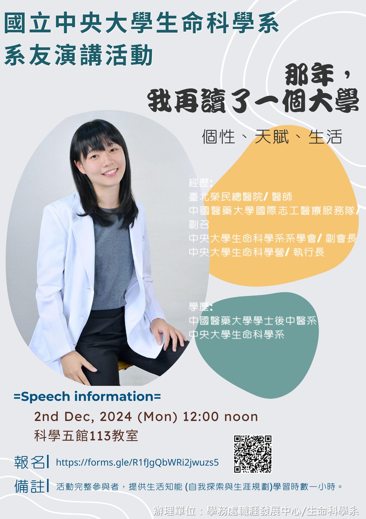 系友專區 上一則 下一則 2024.12.02 大學部102級孔德馨系友演講(現職台北榮民總醫院 醫師) 發佈日期: 2026-02-06 最後更新日: 2026-02-06 資料來源: 瀏覽人次:57 BACK