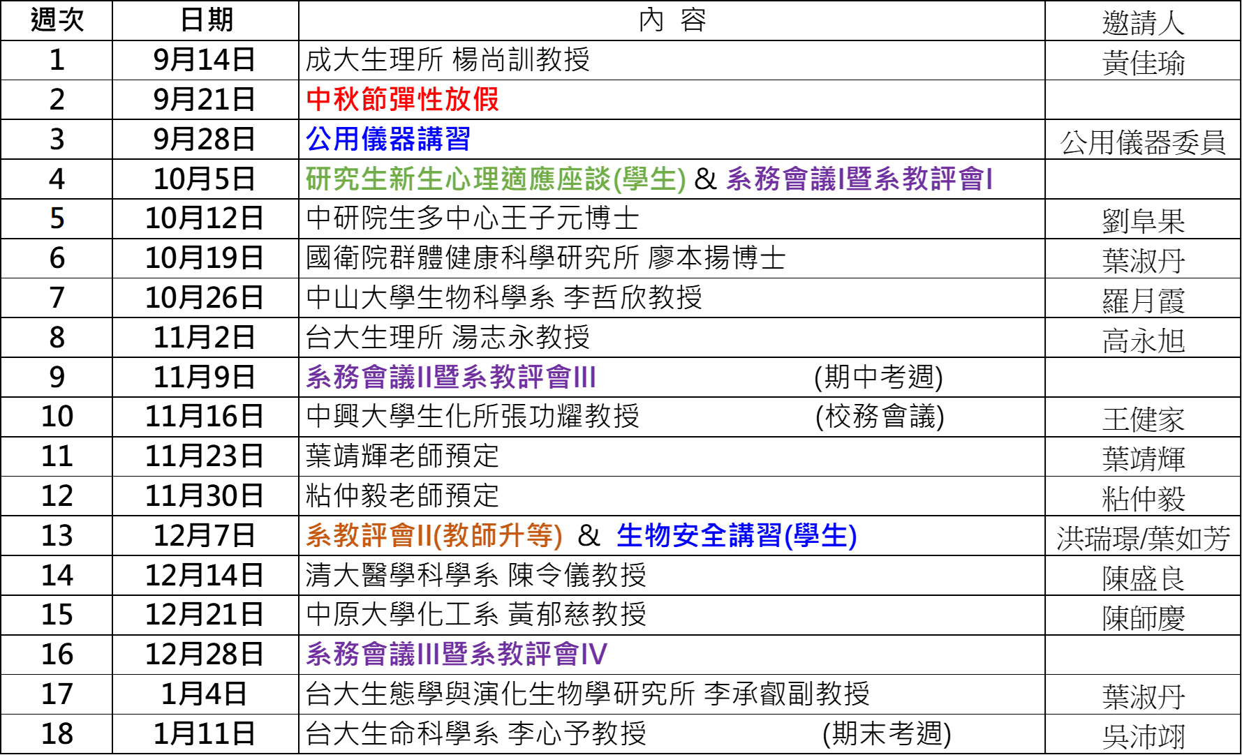 演講公告 上一則 下一則 110學年度第一學期 專題演講 發佈日期: 2021-09-13 最後更新日: 2021-09-13 資料來源: 瀏覽人次:1423 專題演講(110學年度第一學期) 演講時間:10:30 am ~ 12:00 pm 演講地點:中央大學 生命科學系 S5-101 聯絡人:陸重安老師 (03-4227151 ext 65067、65077) BACK