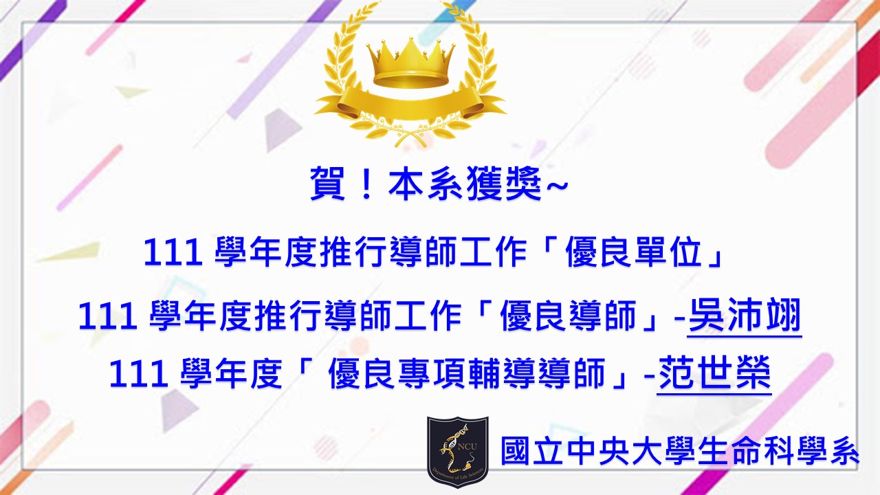 賀!生命科學系、吳沛翊老師、范世榮老師獲獎