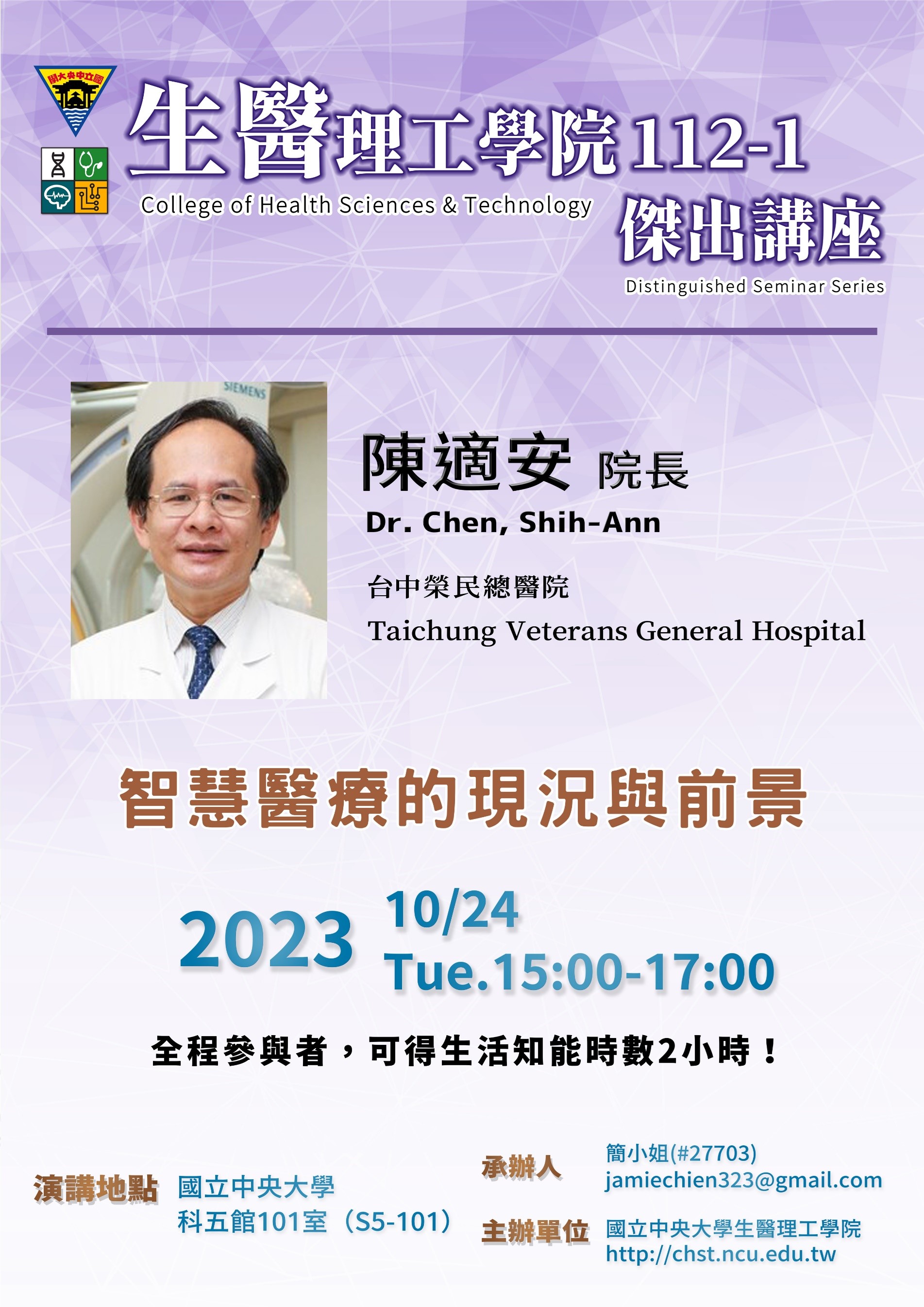 112/10/24(二):112-1學院傑出講座~中榮陳適安院長
