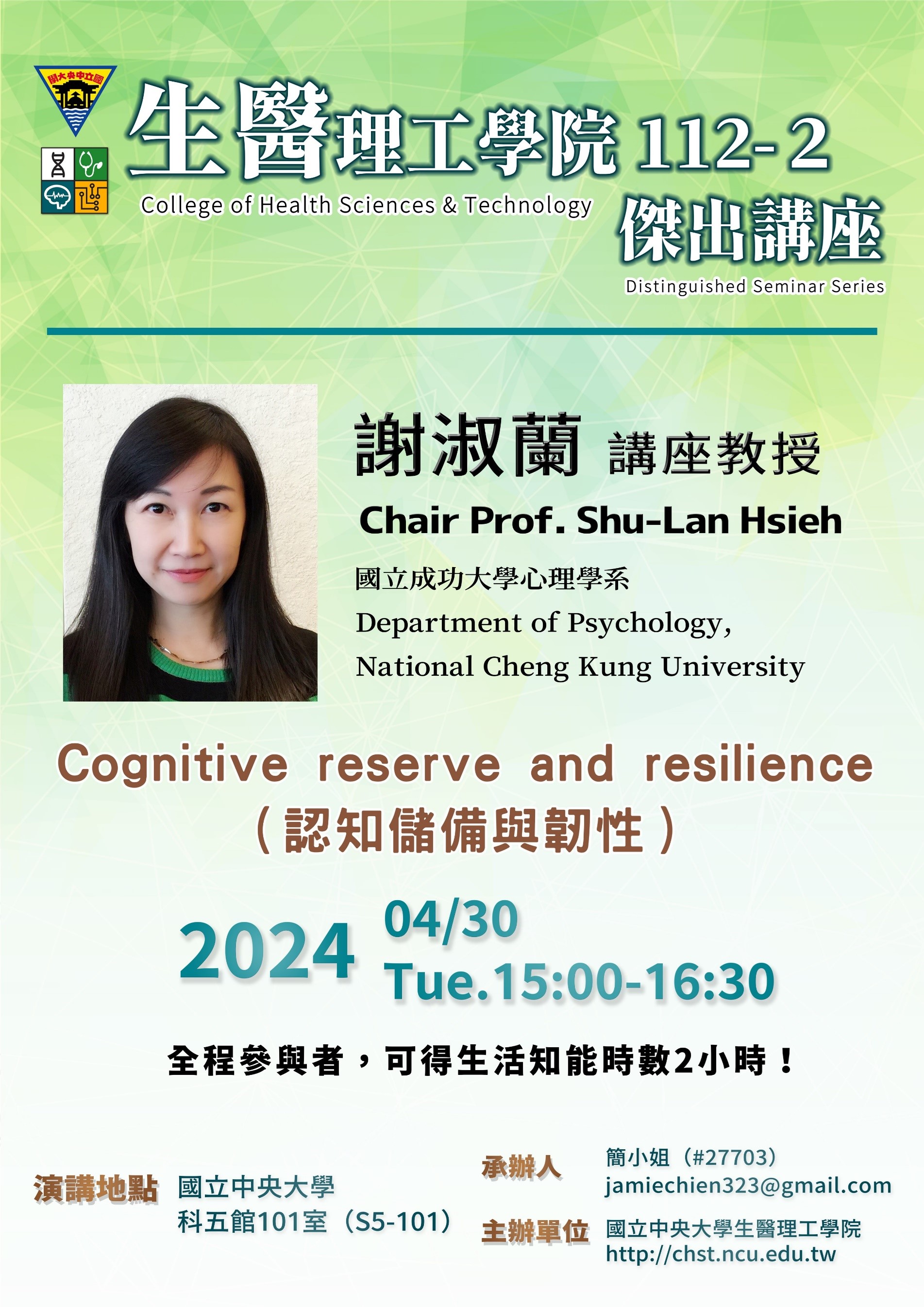 講題:Cognitive reserve and resilience (認知儲備與韌性 )