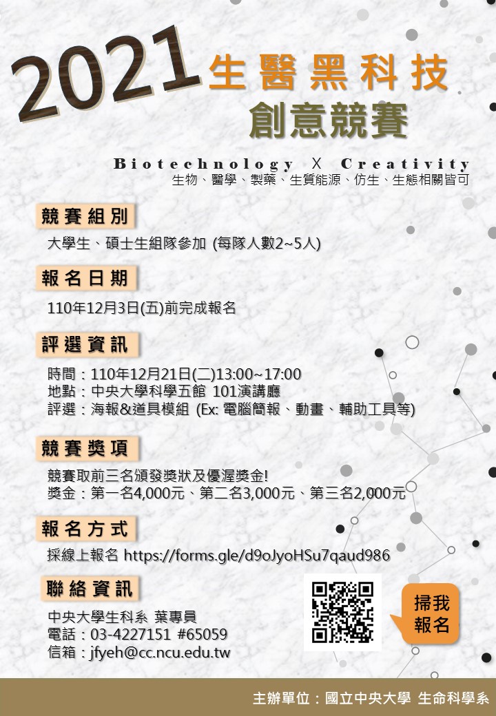 生科系於今年12/21(二)舉辦生醫黑科技創意競賽,