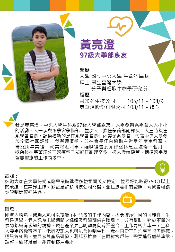 <生科系職涯訪問報導>黃亮澄學長